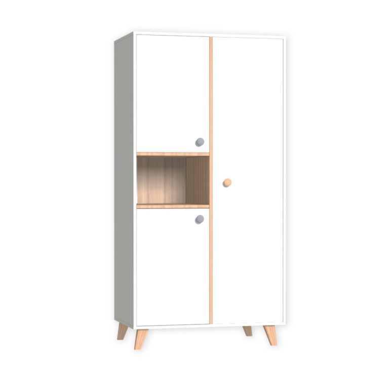 Colette White ormar ima 3 vrata iza kojih se krije veliki prostor za odlaganje. Uz 3 fiksne i 3 uklonjive police + 2 nosača za vješalice zasigurno vam neće ponestati mjesta za dječje potrepštine. Unutarnji raspored osmišljen je tako da maksimizira pohranu bebinih stvari. Na desnoj strani nalaze se 1 velika vrata s lakiranom ručkom i 2 manja vrata s ručkama arktičke sive boje. Colette White je savršen izbor za dječju sobu i sigurno će vam služiti dugi niz godina.