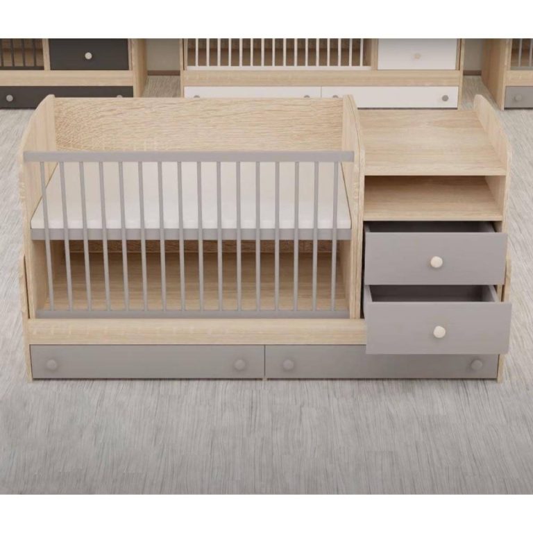 Colette 5u1 kombinirani krevet prati vašeg mališana od prvih trenutaka njegovog života pa sve do školskih dana. U početku, ovaj kombinirani krevet služi vam kao dječji krevetić, komoda za presvlačenje i ormarić za dječju odjeću. Visina madraca u krevetiću može se prilagoditi u 3 razine, a komoda za presvlačenje može se postaviti s lijeve ili desne strane krevetića. Kada dijete preraste kinderbet, konstrukcija kinderbeta se uklanja, a ostatak se pretvara u klasični dječji krevet. Komoda za presvlačenje postaje klasična komoda s ladicama. Konstrukcija kinderbeta postaje radni stol. Svaki ovaj dio može se koristiti i kao poseban komad namještaja. Madraci i podloga za prematanje kupuju se zasebno.