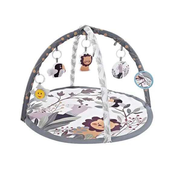 Podloga za aktivnosti je šarena i privući će pozornost vaše bebe. Tijekom igre i vježbanja stimulira bebinu motoriku, vještine učenja i sva osjetila. Meka tkanina, različite teksture i zabavne igračke pretvaraju ovu podlogu za igru u bebinu vrhunsku dvoranu za igru! Vaši će mališani uživati u mekoj udobnosti, šarenim igračkama i različitim zvukovima koji zabavljaju i potiču igru.