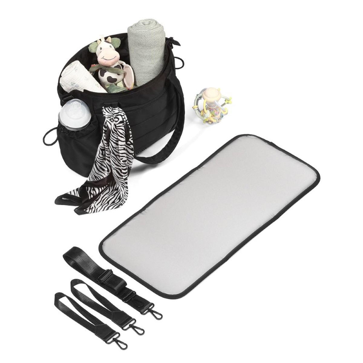 Praktična organizacija omogućuje vam da brzo pronađete ono što vam je potrebno. Torbu dodatno krasi lijepa marama s animal printom koju možete koristiti kao ukras na torbi ili kao modni dodatak – vezati ga u kosu ili oko vrata. Torba dolazi s velikom podlogom za presvlačenje, idealnom za šetnje i putovanja. Omogućuje udobno i higijensko presvlačenje pelena izvan kuće. Kako više ne biste tražili ključeve ili dudu na dnu torbe, dodan je praktičan dugi remen s kopčom unutar torbe, tako da su vam najvažnije stvari uvijek pri ruci. Torba je opremljena s tri vrste ručki: odvojivim bočnim remenima za pričvršćivanje na kolica, dugim podesivim remenom za rame i kratkim ručkama za nošenje u ruci. Dulje ručke omogućuju udobno nošenje preko ramena.