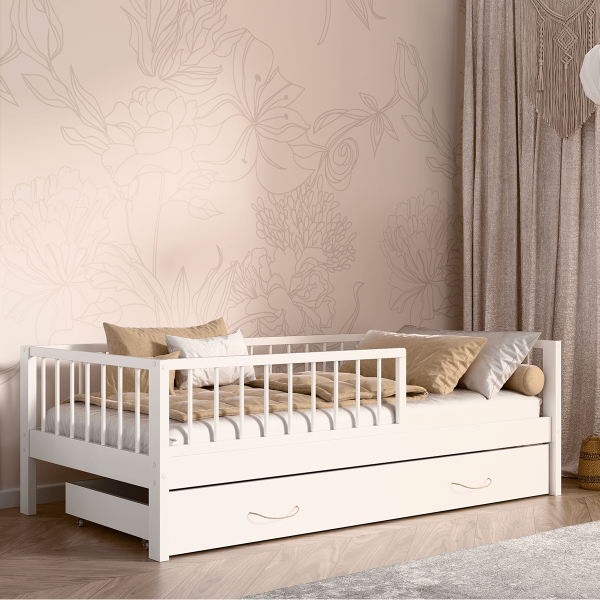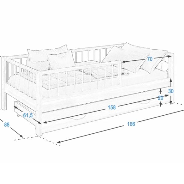Sigurnost na prvom mjestu – Brinući se za miran san i sigurnost vašeg djeteta, krevet je opremljen ogradom postavljenom sa svake strane kreveta. Dodatno, strateški postavljen izlaz na sredinu kreveta učinkovito štiti od ispadanja tijekom spavanja.
