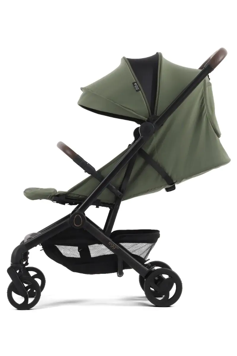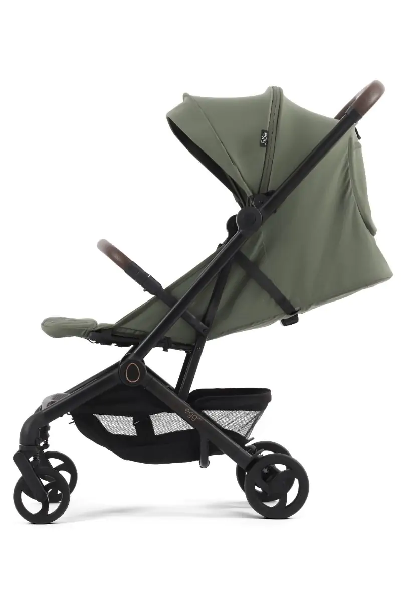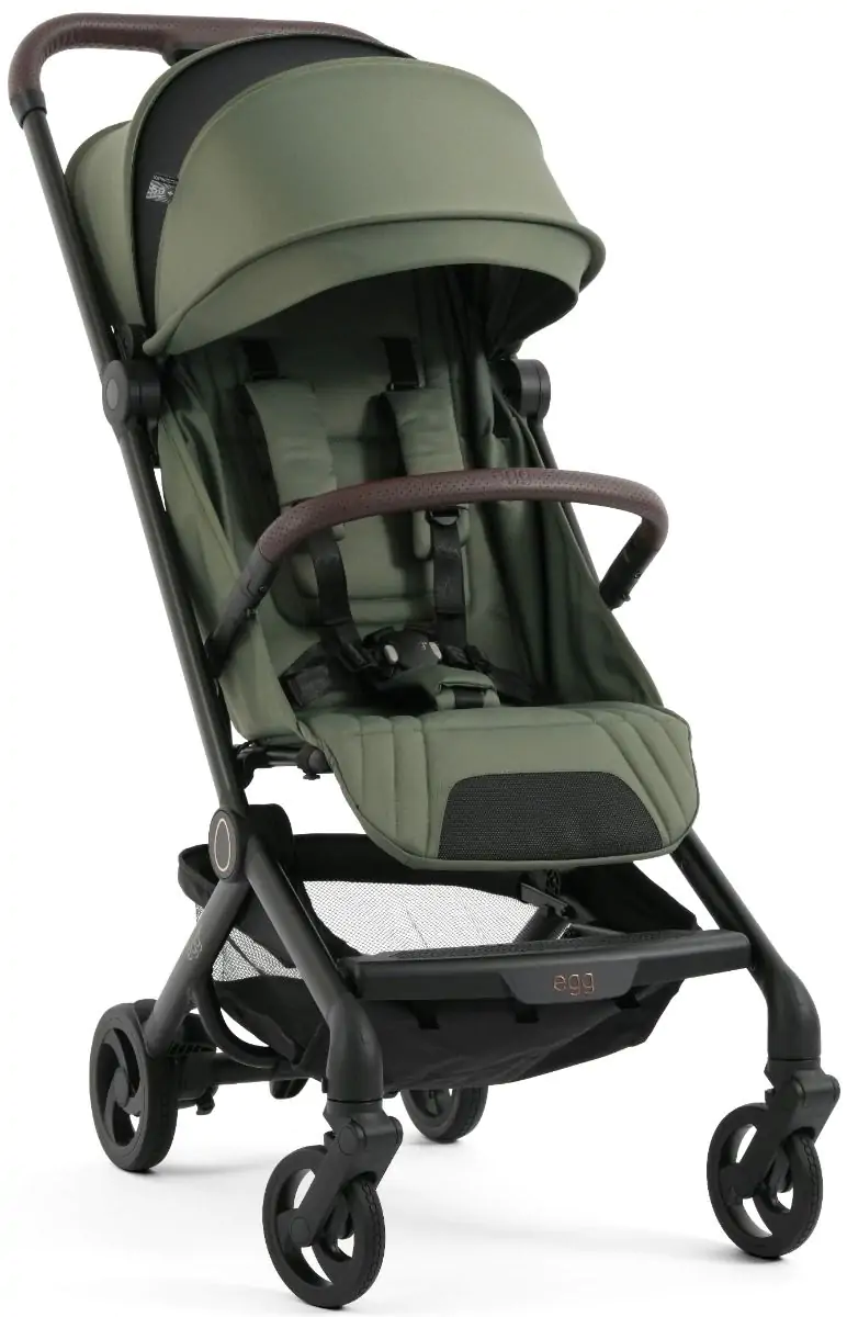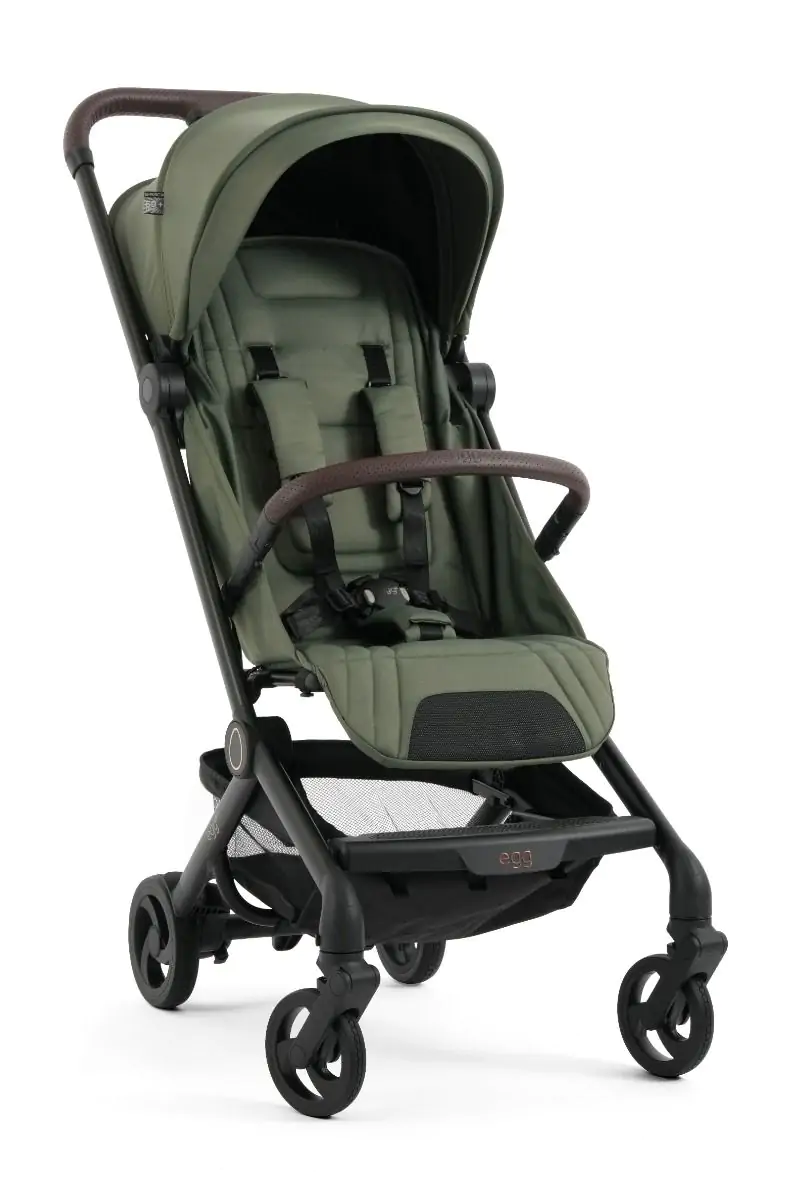 Prepoznatljiv egg® stil vidljiv je u svakom detalju – od elegantnih linija do ručno šivane kožne ručke (visina 105 cm) i uklonjive zaštitne prečke.