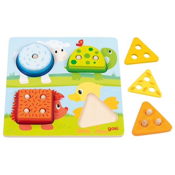 Tko ima šiljke, a tko perje? Boje, oblici, veličine i životinje – s ovom klasičnom drvenom igračkom možete puno naučiti. Istodobno se promiču fine motoričke sposobnosti i koordinacija oko-ruka.