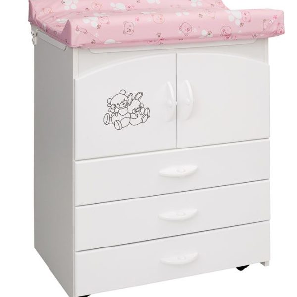 Komoda je opremljena s odvojimo anatomskom kadicom, s cijevi i slavinom za odvod. Komoda ima sklopivu policu sa sigurnosnim sustavom i praktičnom izmjenom. Obilježena klasičnim nijansama i slatkim malim ukrasima, poput ručkica u obliku zvjezdica ili 2 slatak madvedića u 3D obliku