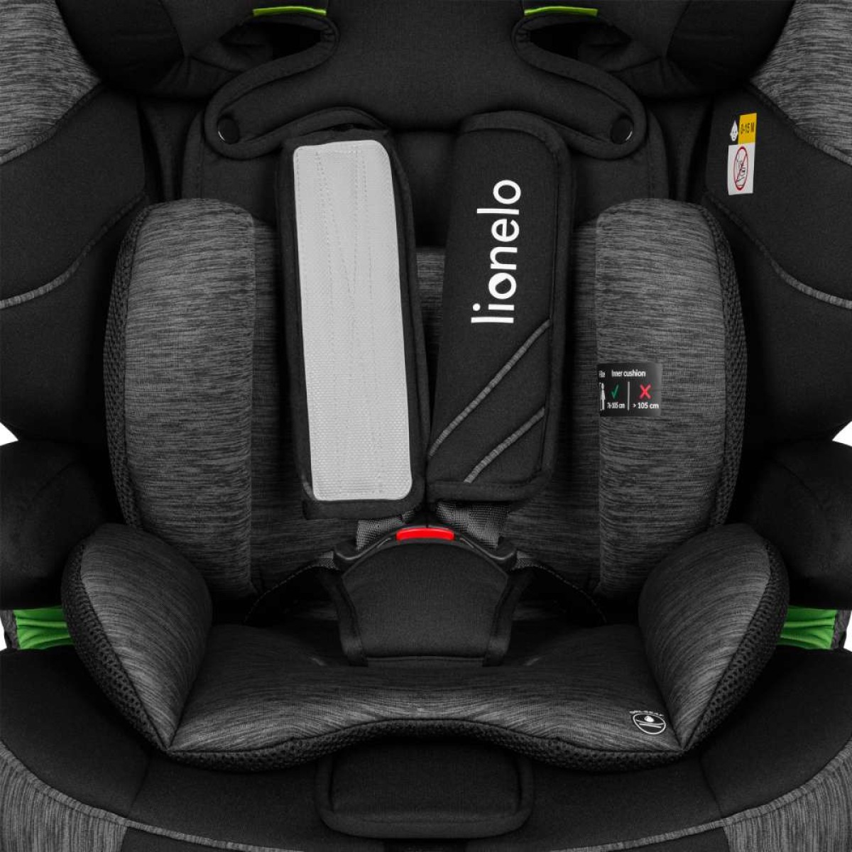 Lionelo autosjedalica Levi One udovoljava strogom standardu R129 (i-Size), koji jamči najvišu razinu sigurnosti. Namijenjena je djeci visine od 76 do 150 cm i dizajnirana za montažu u smjeru vožnje (FWF). Naslon za glavu ojačan je memorijskom pjenom, koja savršeno apsorbira udarce i štiti glavu i vratnu kralježnicu. Levi One i-Size postavlja se pomoću sigurnosnog pojasa automobila, pa odgovara bilo kojem modelu vozila. 10-stupanjsko podešavanje visine naslona za glavu i široko sjedalo s umecima za smanjenje omogućuju da sjedalo “raste” s djetetom. Dodatna prednost je mogućnost odvajanja naslona, što olakšava skladištenje.