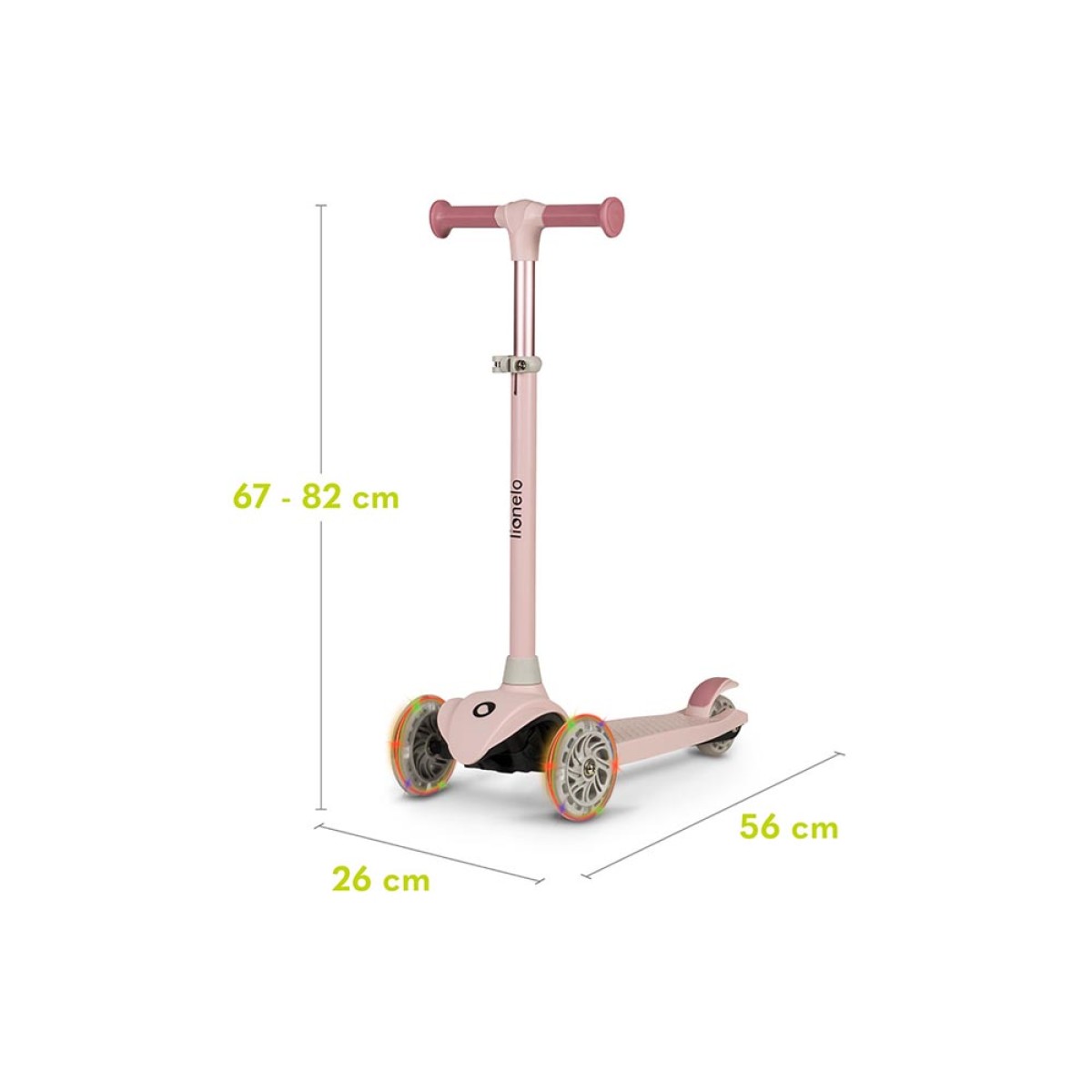 Tri robusna kotača osiguravaju stabilnost i sigurnost, dok udobne ručke čine Jessy romobil užitkom za korištenje. Štoviše, LED svjetla u kotačima aktiviraju se dok se pomičete, dodajući još više zabave i boje svakoj avanturi.