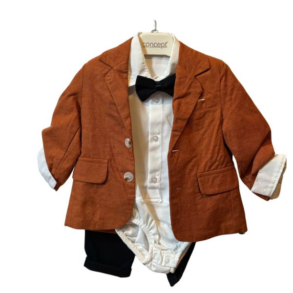 Odijelo za dječake za sve prigode, sastoji se od bodi košulje, hlačica, sakoa i mašne. Veličine su realne i komotne.