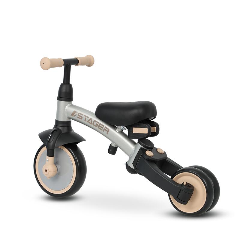 Kako bi razvio ravnotežu i samopouzdanje, pretvara se u bicikl za ravnotežu, zadržavajući stabilnost koju nudi dizajn.